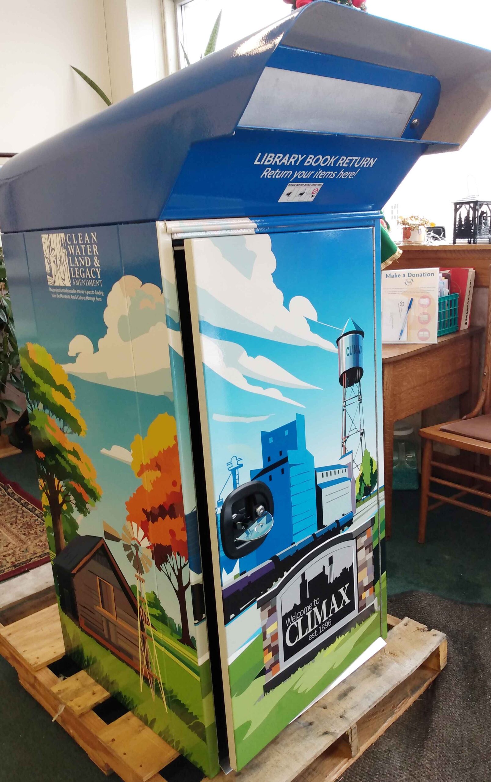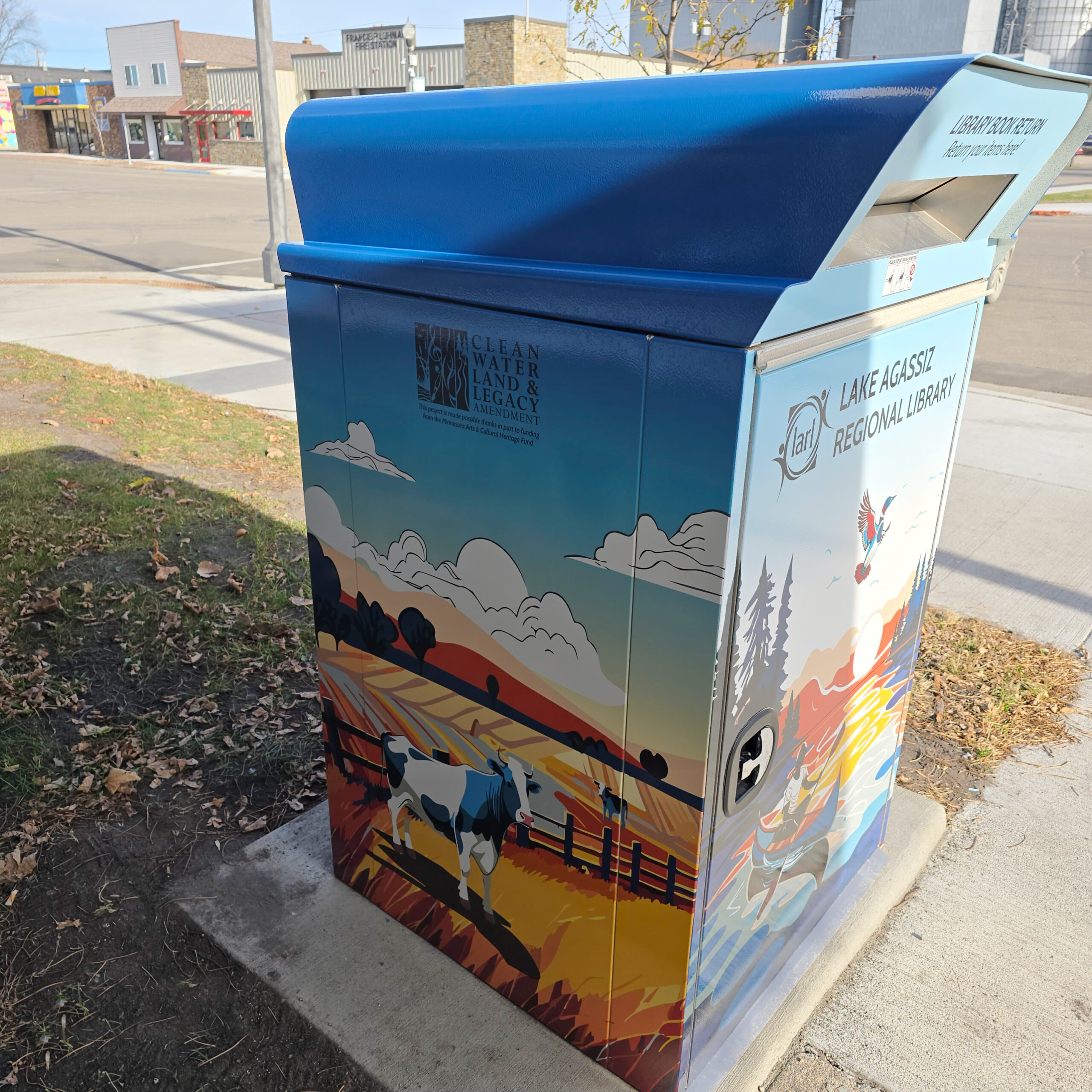 In 2024, LARL issued a Request for Proposals for artists to create artistic designs for metal book return boxes with artists selected in Fall 2024. Installation of artwork for locations in Halstad and Climax is expected in Spring 2025. This project was made possible thanks in part to funding from the Minnesota Arts & Cultural Heritage Fund.