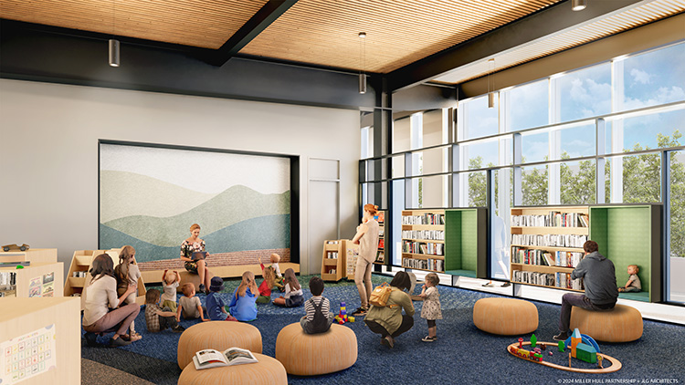 Visit the Children’s Library on the second floor and discover features perfect for kids, including eye-level shelving for independent browsing, cozy reading nooks and an interactive activity corner.